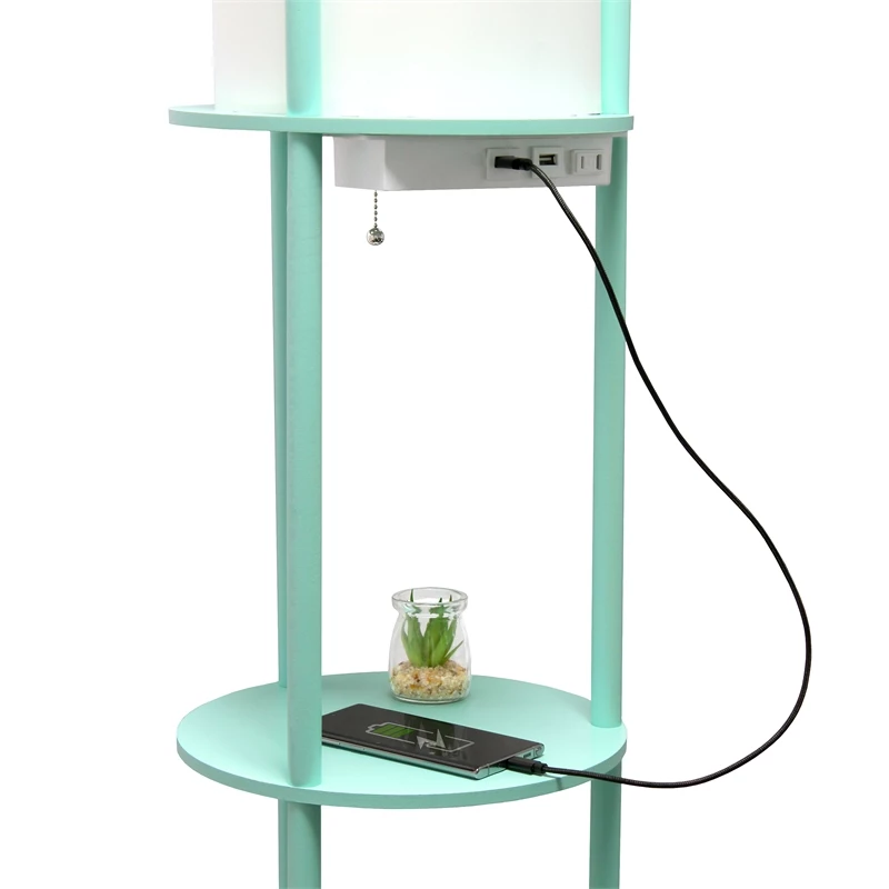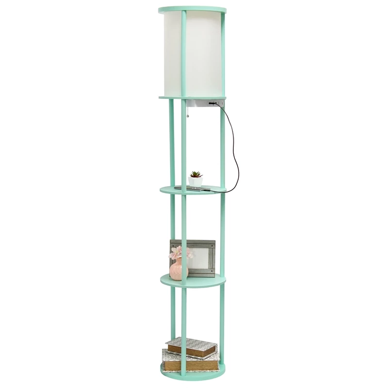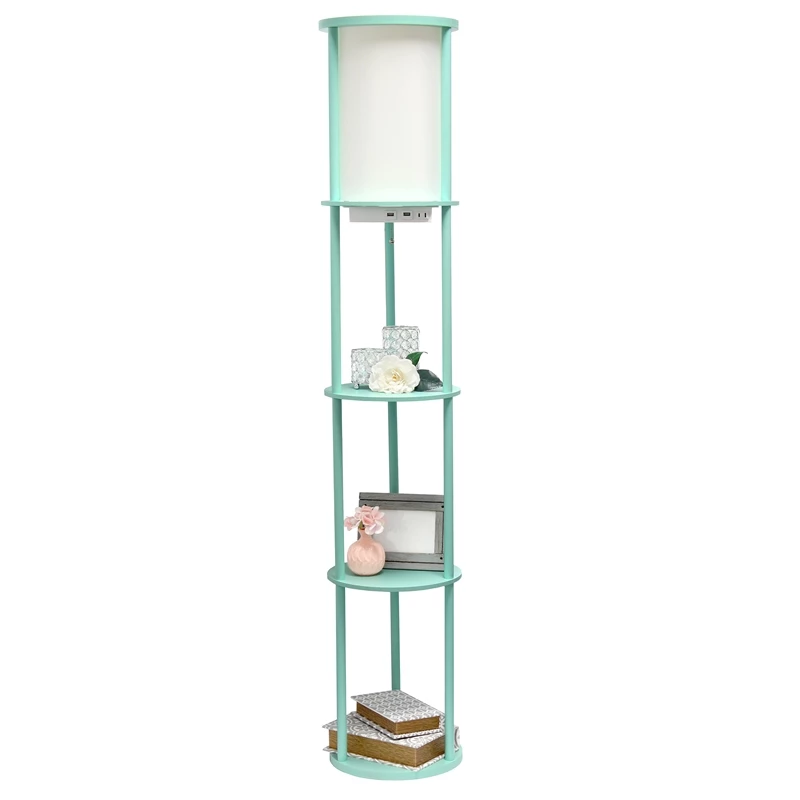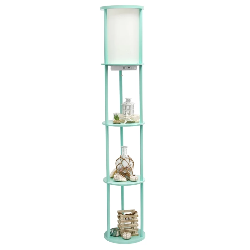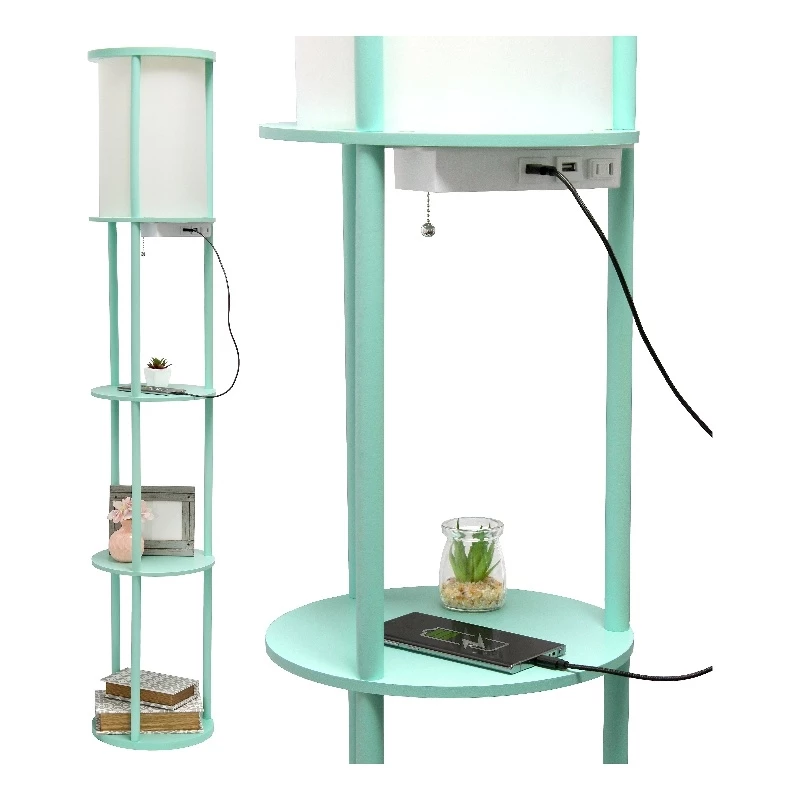 Cheap ๐คฉ All The Rages Simple Designs 62.5″ Round Etagere Organizer Floor Lamp – 2 USB 1 Outlet – Aqua ๐