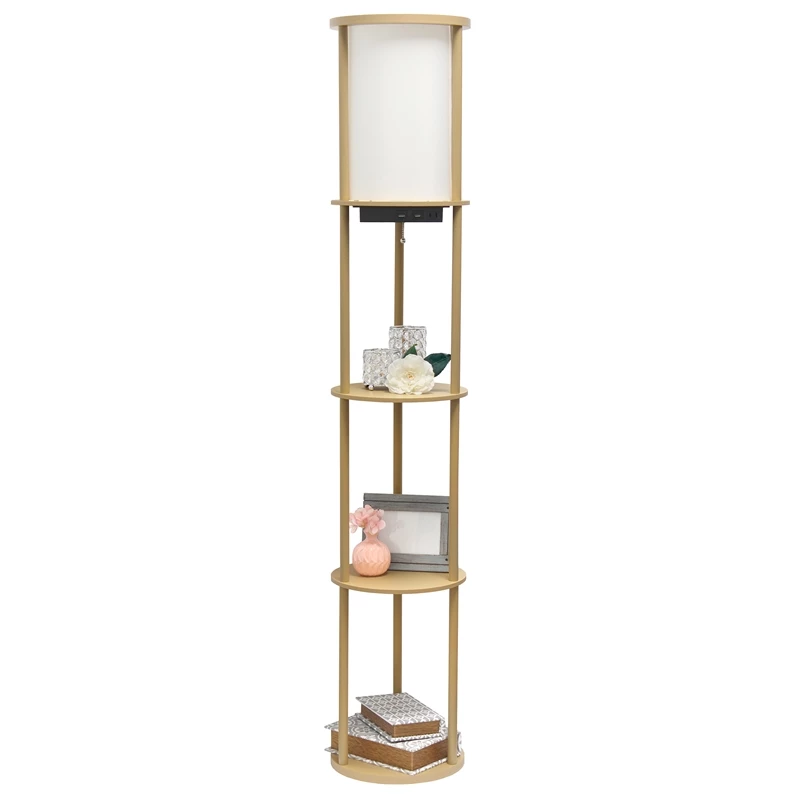 Deals ๐ All The Rages Simple Designs 62.5″ Round Etagere Organizer Floor Lamp – 2 USB – 1 Outlet – Tan ๐ฅฐ