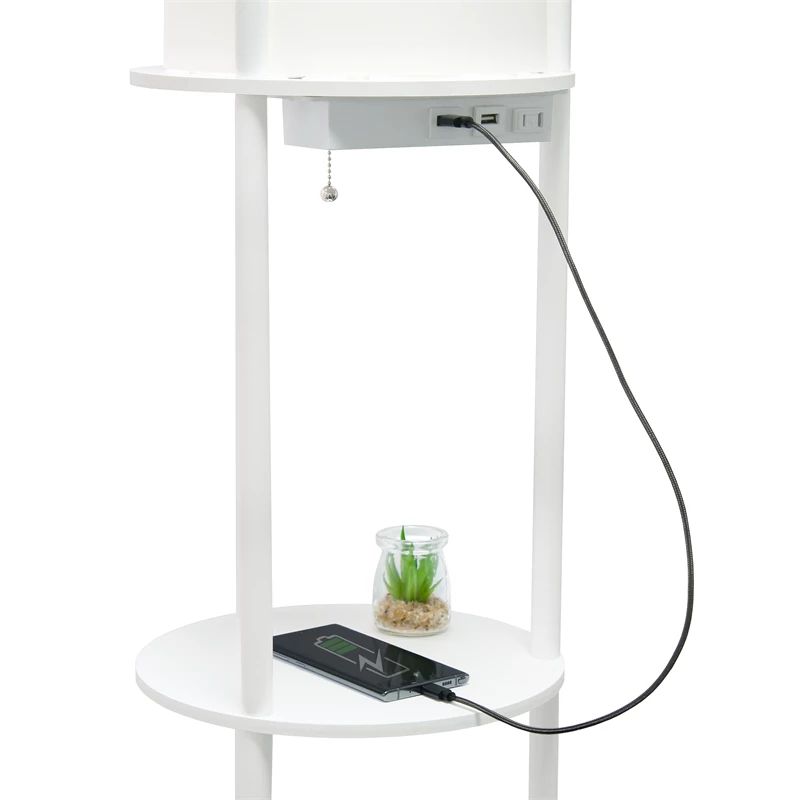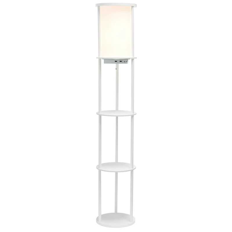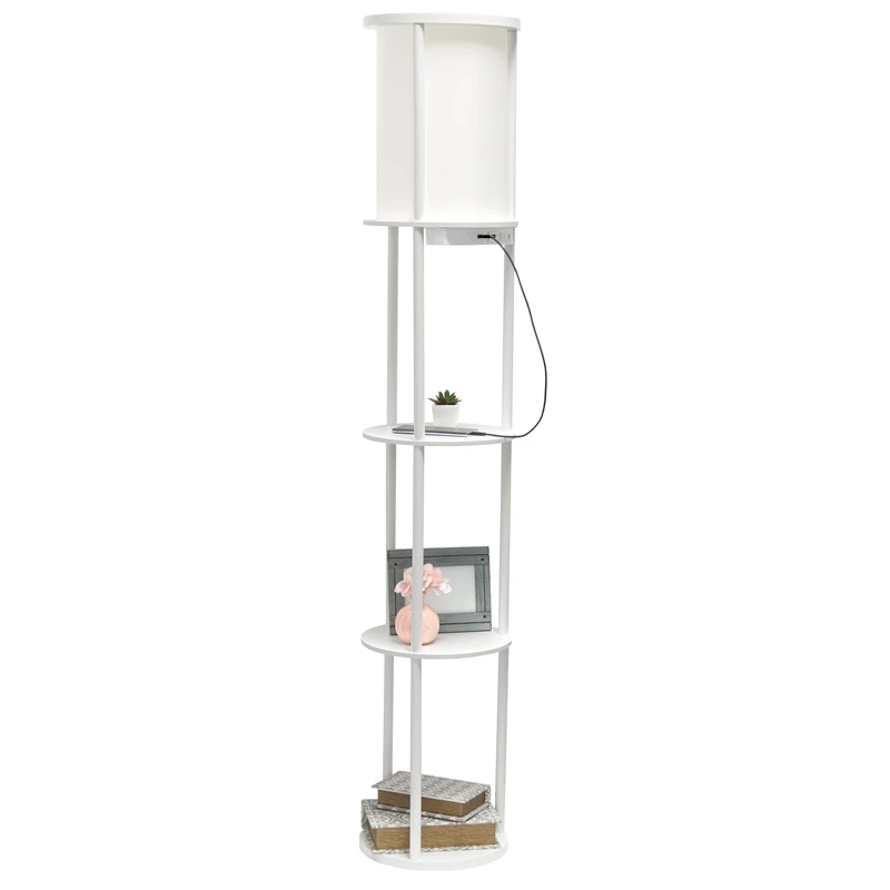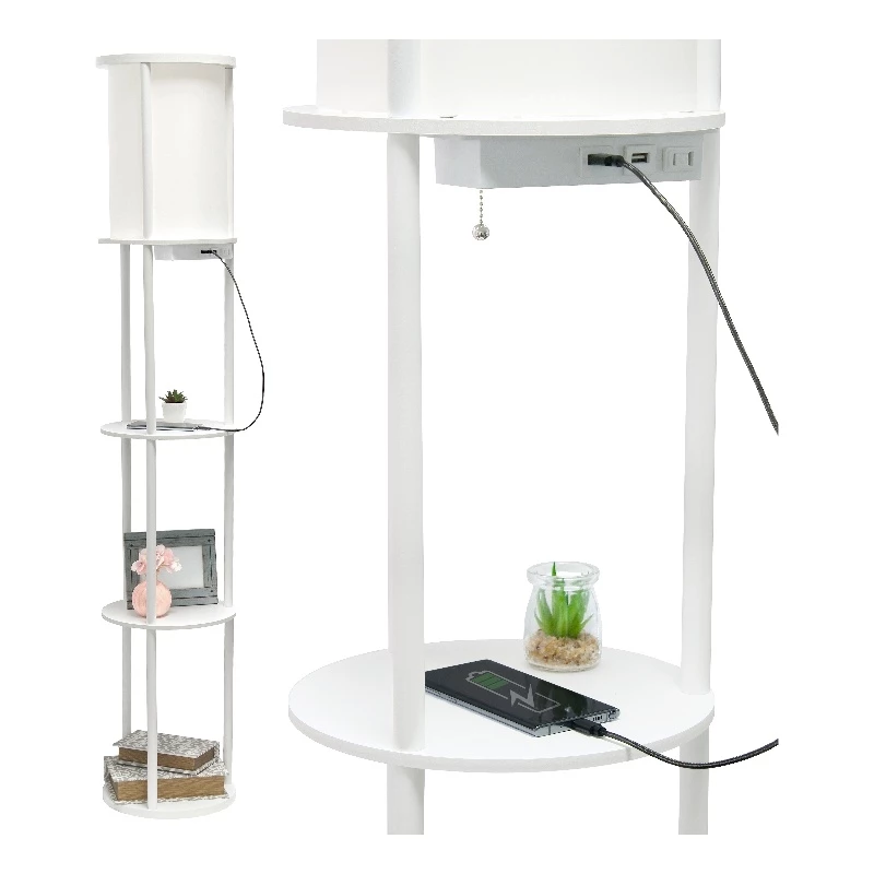 Cheap 👍 All The Rages Simple Designs 62.5″ Round Etagere Organizer Floor Lamp – 2USB – 1Outlet – White 👍