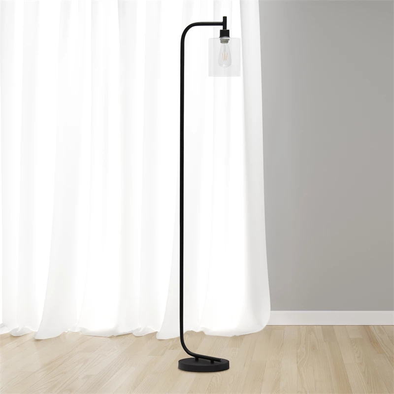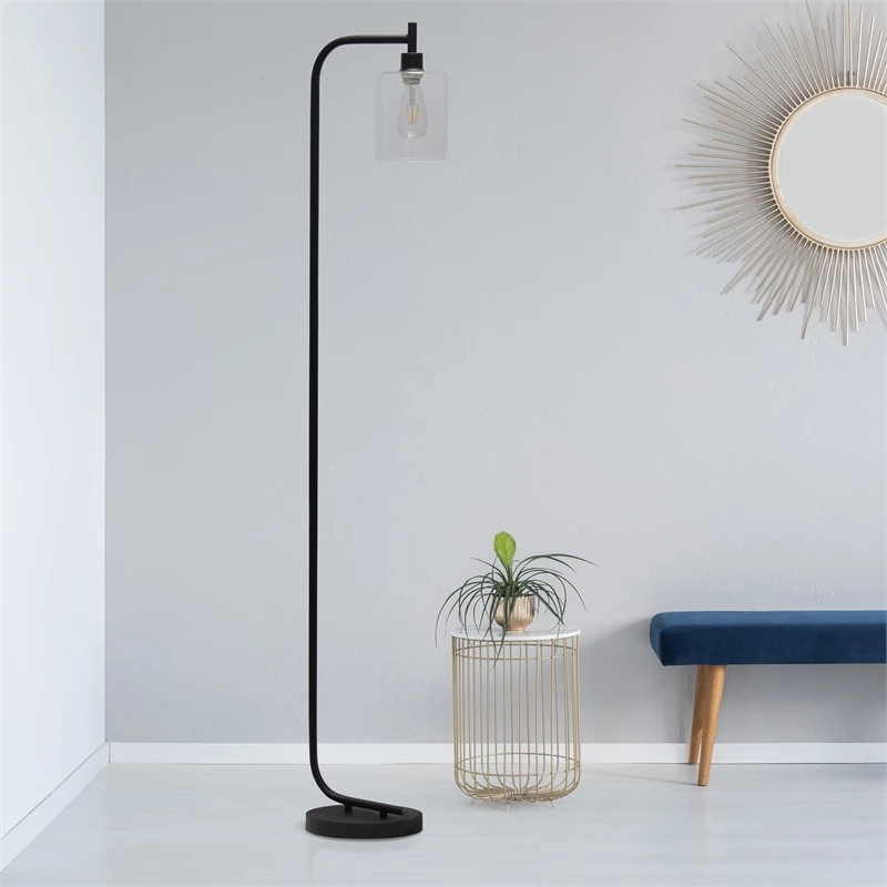The perfect floor lamp to add a modest, refined look to any room! The iron base and curved arm are accented with a simple glass shade for a sophisticated touch. Perfect for foyers, bedrooms, living rooms or even offices! **HELPFUL TIP: To get the complete industrial look, we recommend using a decorative Edison/Vintage bulb (not included). **