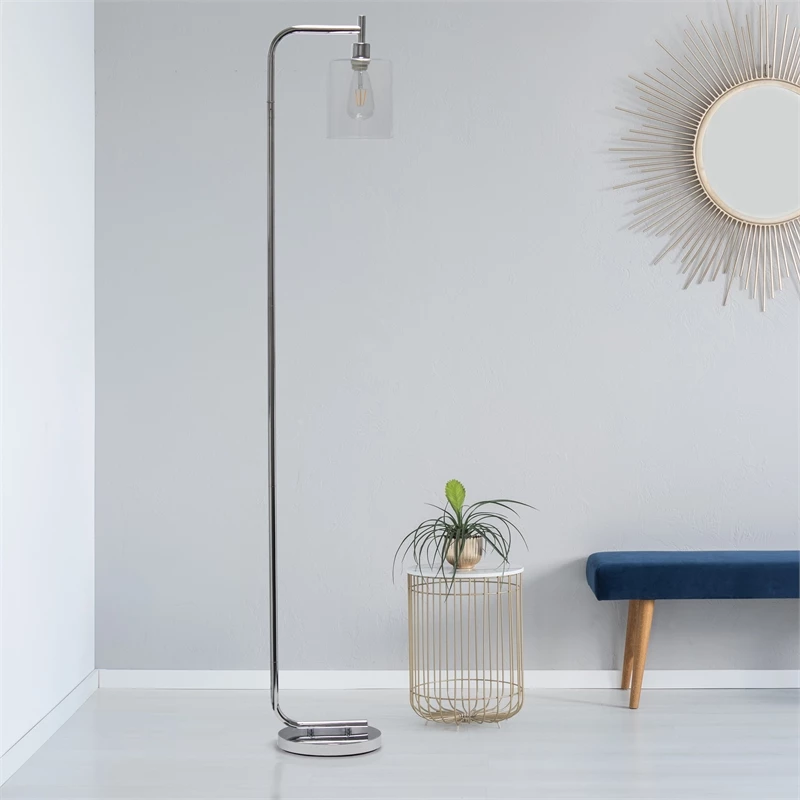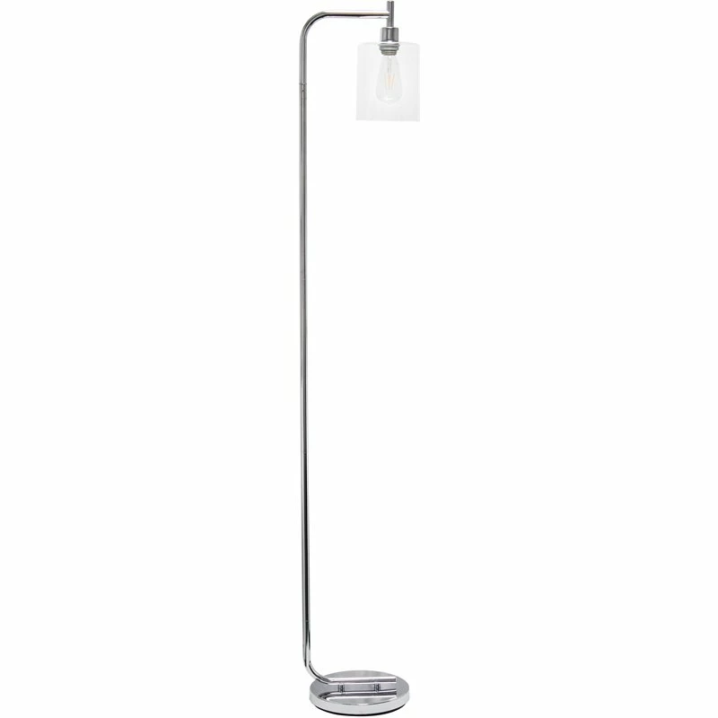 The perfect floor lamp to add a modest, refined look to any room! The iron base and curved arm are accented with a simple glass shade for a sophisticated touch. Perfect for foyers, bedrooms, living rooms or even offices! **HELPFUL TIP: To get the complete industrial look, we recommend using a decorative Edison/Vintage bulb (not included). **