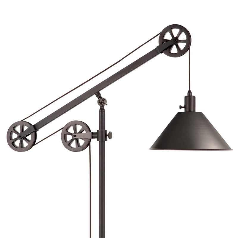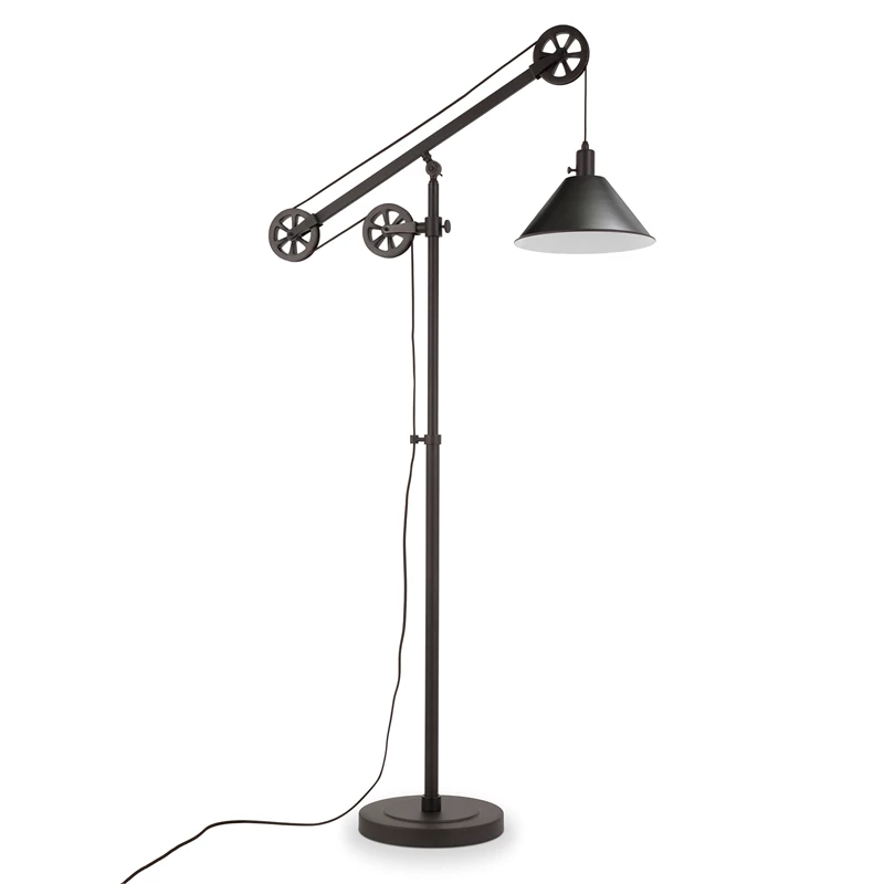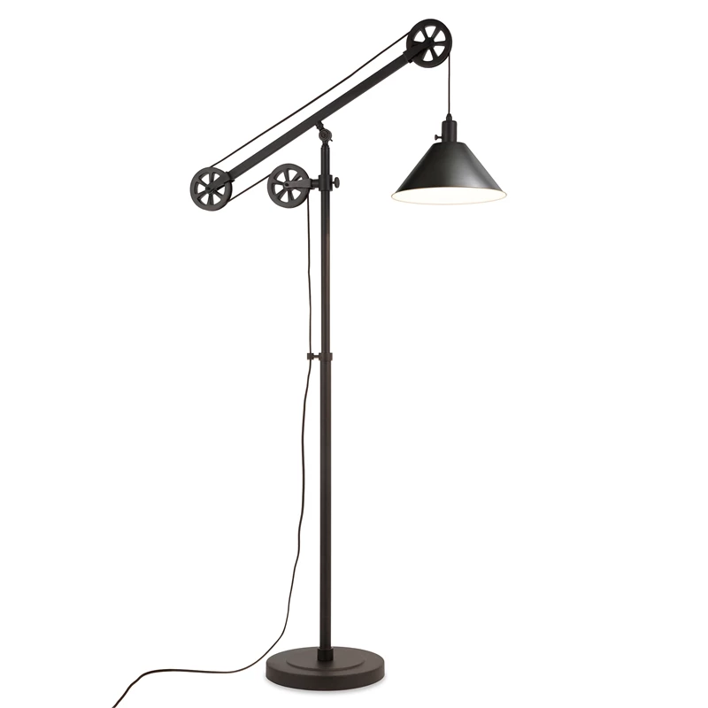 This unique and eye-catching industrial floor lamp is made to be the center of attention in your living room, bedroom, dining, or even office. It’s a conversational modern twist on a traditional and classic design. Hand crafted from metal in a deep contemporary Black Bronze, brass, or steel finish and featuring a functional adjustable pulley system.