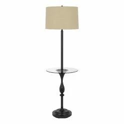 Striking, attractive, and uniquely designed for those with modern taste, this multipurpose floor lamp with table brings charm to any space in your home. Featuring a durably built metal base in a dark bronze finish, this piece features a smooth beige linen fabric shade, a convenient USB charger and an easily accessible glass table for holding everyday essentials.