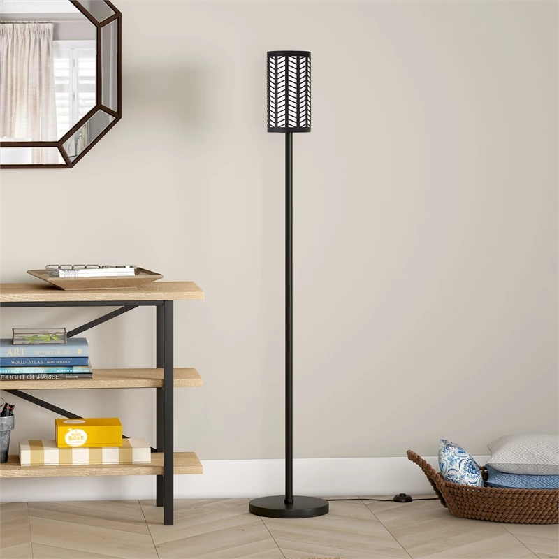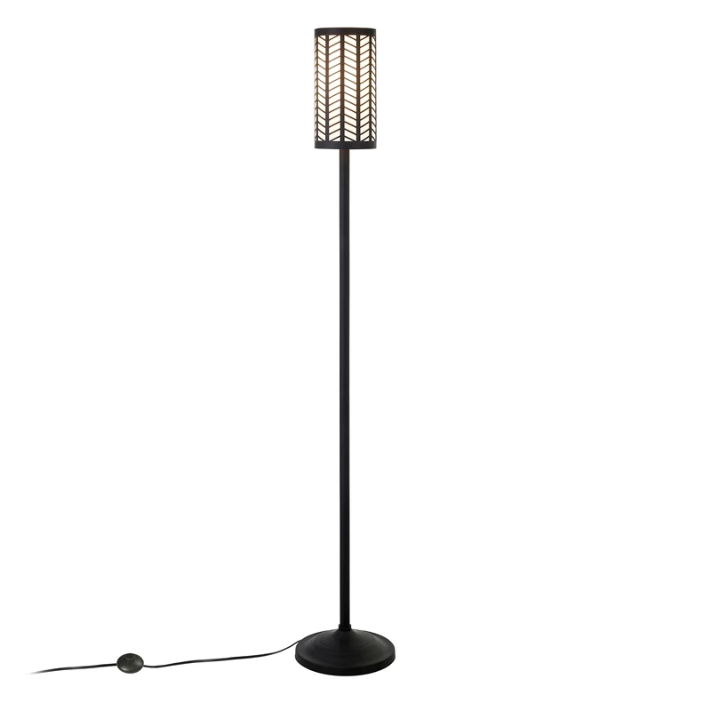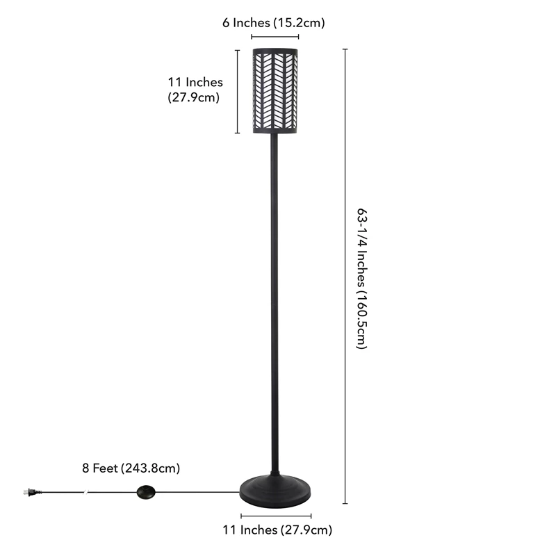This clean, chic, linear lamp is modern in design and will fit into many contemporary spaces Add a touch of whimsy to your lighting design with this playfully detailed floor lamp. The simple candlestick design is punctuated by a double-layered cylindrical shade, featuring a perforated chevron design in blackened bronze that creates a cozy contrast against the inner white diffuser. The perfect fit for your living room, bedroom, office, study, or any room that needs a modern stylish flair. .