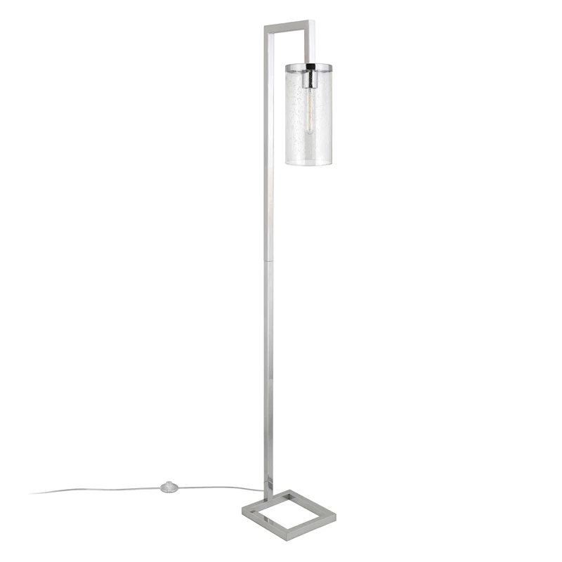 Modern farmhouse chic with a hint of mid-century style will make your home’s living room, bedroom, dining room, or office stand out. The contemporary blackened bronze, brass, or nickel finish that’s been applied by hand to this floor lamp is eye catching, and the seeded glass, clear glass or milk glass downward facing lamp shade will add elegence as it illuminates.
