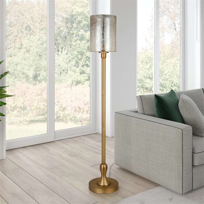 A handmade mercury glass shade creates a warm glow in your living room, bedroom, office, or dining room and brings a modern farmhouse appeal to your home. The black or brass metallic base adds a hint of industrial style making this a versatile floor lamp.