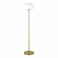 Achieve effortless retro styling in your space with this modern take on a classic Art Deco-inspired design. A mushroom-shaped white milk glass shade provides soft ambient light and major vintage flair. The sleek base is finished in a neutral metallic shade to blend seamlessly with your existing décor. This floor lamp will be a statement piece in any room.