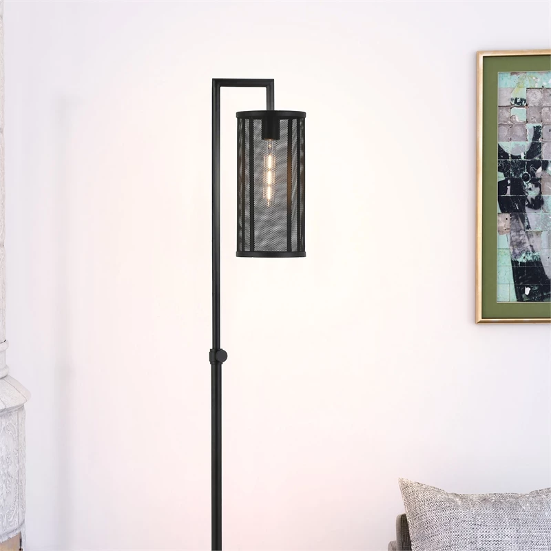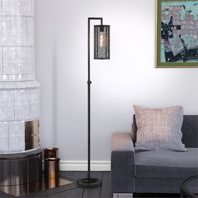 This industrial floor lamp takes notes from factory lighting. It creates a moody ambiance with the Black Bronze body and perforated metal shade, enhancing the textures in both the lamp and the room around it. A perfect choice next to your favorite reading chair or sofa, this floor lamp will easily become the focal point in any room such as the living room, bedroom, or home office.