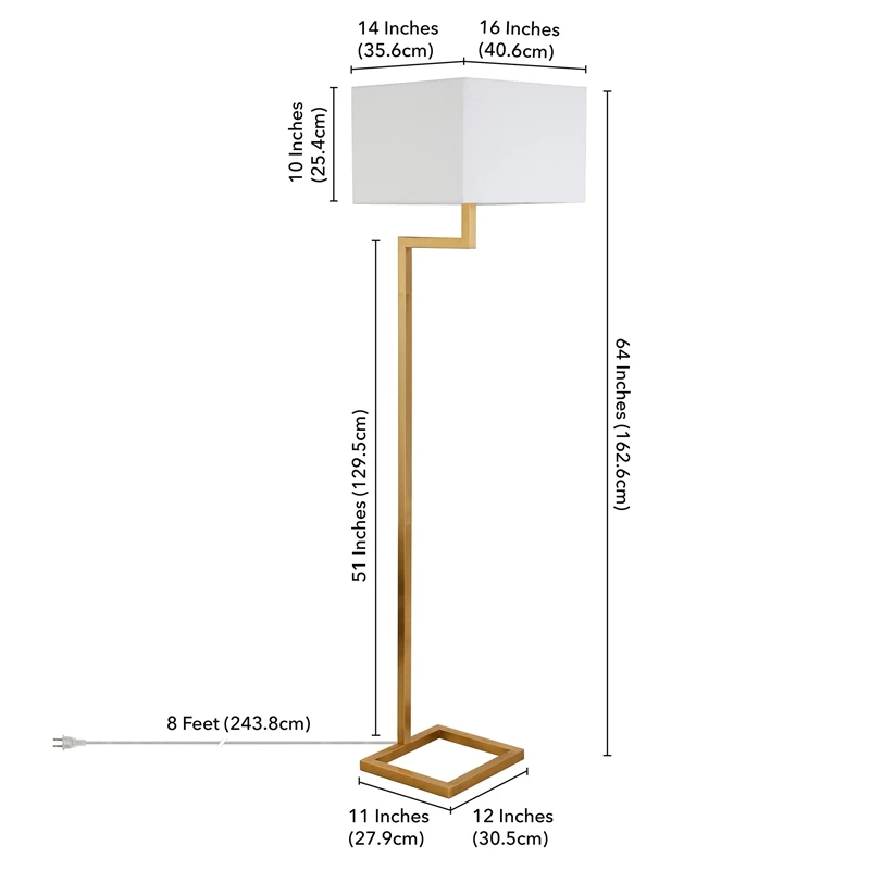 This timeless floor lamp updates a classic look with a modern geometric twist. Its square metal offset base can be tucked under a couch or armchair, perfect for compact spaces or when you need a closer light to read by. The squared-off silhouette is topped with a rectangular shade in crisp linen, following the angular design of the base. Perfectly styled for both transitional and modern spaces, this fixture can blend in or stand out in many décor styles and color schemes.