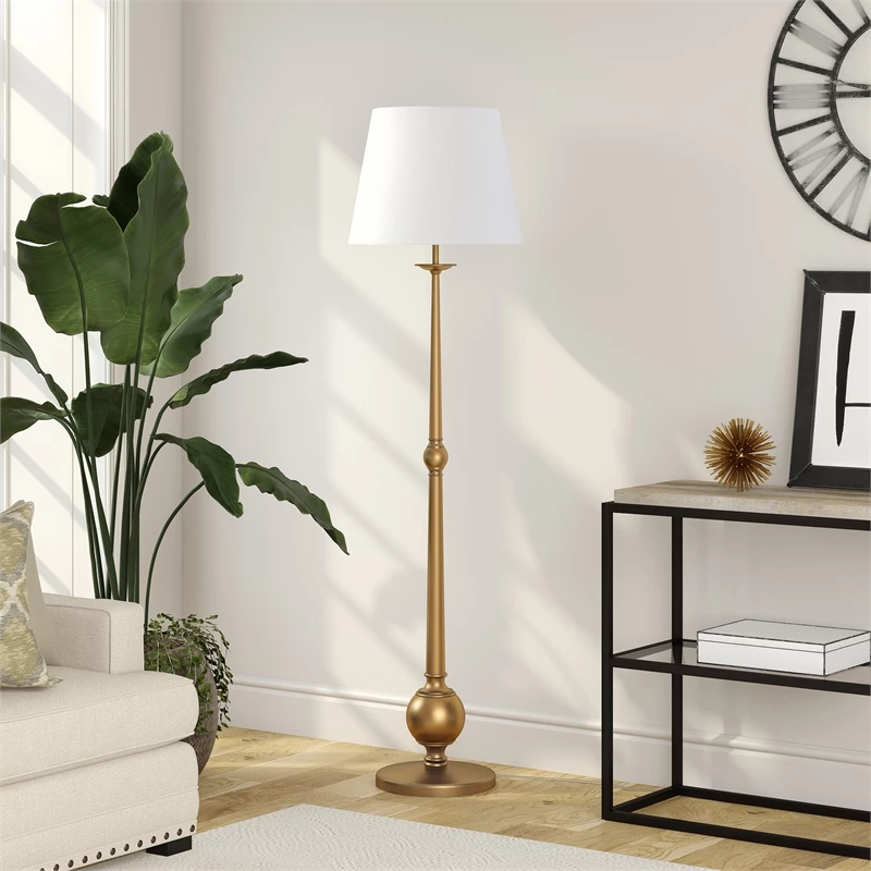 Cheapest ๐ Henn&Hart 17″ Brushed Brass Metal/Fabric Floor Lamp ๐
