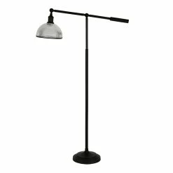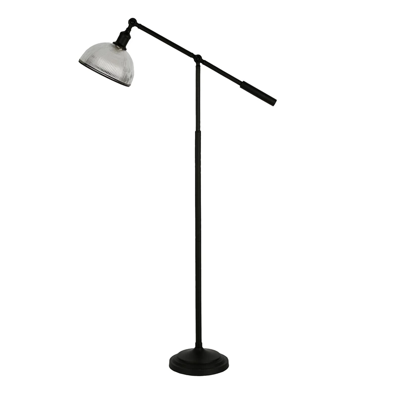 Inspired by modern farmhouse design, this height-adjustable floor lamp features a clean metal body culminating into a dome shade made from ribbed glass. Its adjustable swing arm and lamp head allow you to cast light where you need it most. Use it as a reading light or task light in your living room, bedroom or office and watch how it transforms the space!