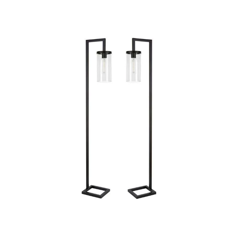 Lowest price online On all Home Square 2 Piece Metal Floor Lamp Set with Clear Glass Shade in Black – 2391419-PKG
