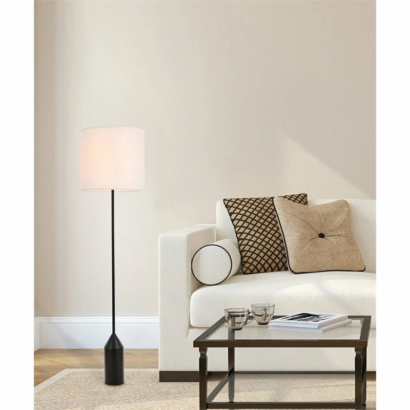 Experience the epitome of modern beauty with the Ines collection floor lamp. From the weighted metal base, to the slender rod to the cylindrical shade, it’s a modest kind of luxury. Enjoy this lamp’s brightness in the living room, office, or bedroom. Turn on or off with a convenient foot switch.