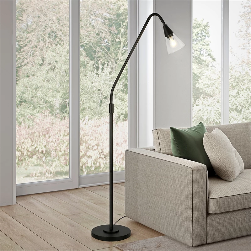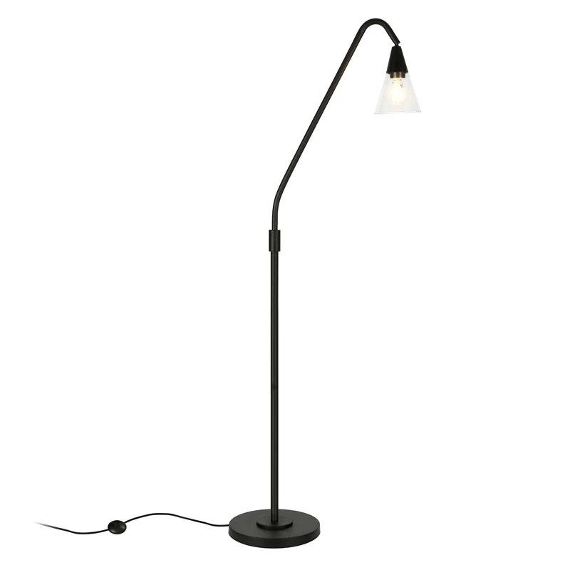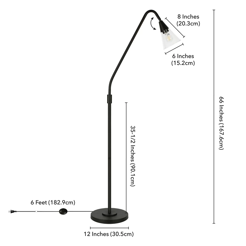 A handmade seeded glass shade creates a warm glow in your living room, bedroom, office, or dining room and brings a modern farmhouse appeal to your home. This floor lamp is crafted from steel and is a great addition to any home looking for an industrial-inspired illumination. The black metallic base adds a hint of industrial style making this a versatile floor lamp.