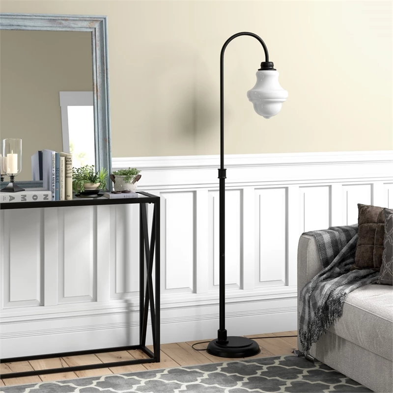 Bring a touch of modern elegance to your living room, bedroom, office or study with this eye-catching minimalist floor lamp. It is crafted from blackened bronze steel and is a great addition to any home looking for an industrial-inspired illumination. The arc of the lamp leads to a beautifully shaped teardrop shade made in milk glass that adds a retro sophistication to your space.