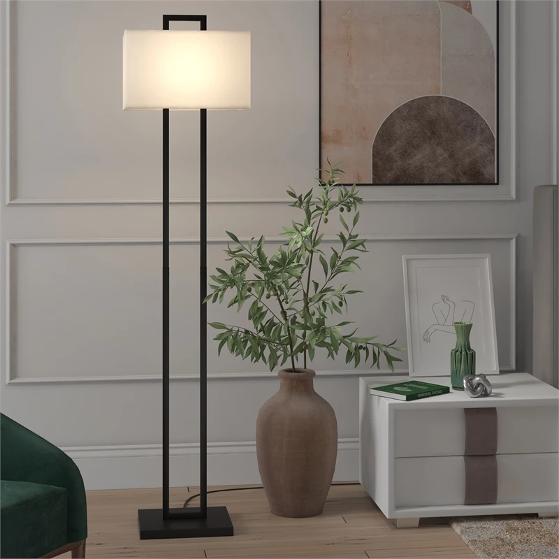 Bring a touch of modern elegance to your home with this contemporary floor lamp. A squared off arch that meets above the crisp rectangular shade emphasizes the verticality of the fixture and creates a bold yet simple silhouette. The transitional style of this 68” floor lamp allows it to blend in or stand out in any room of your home.