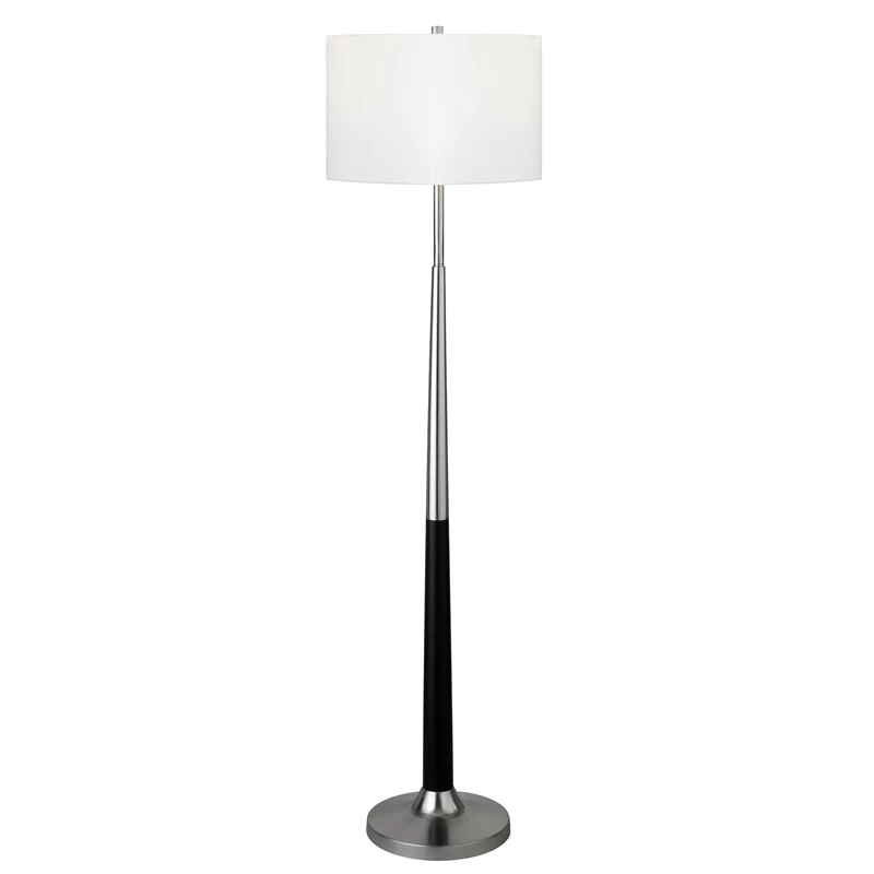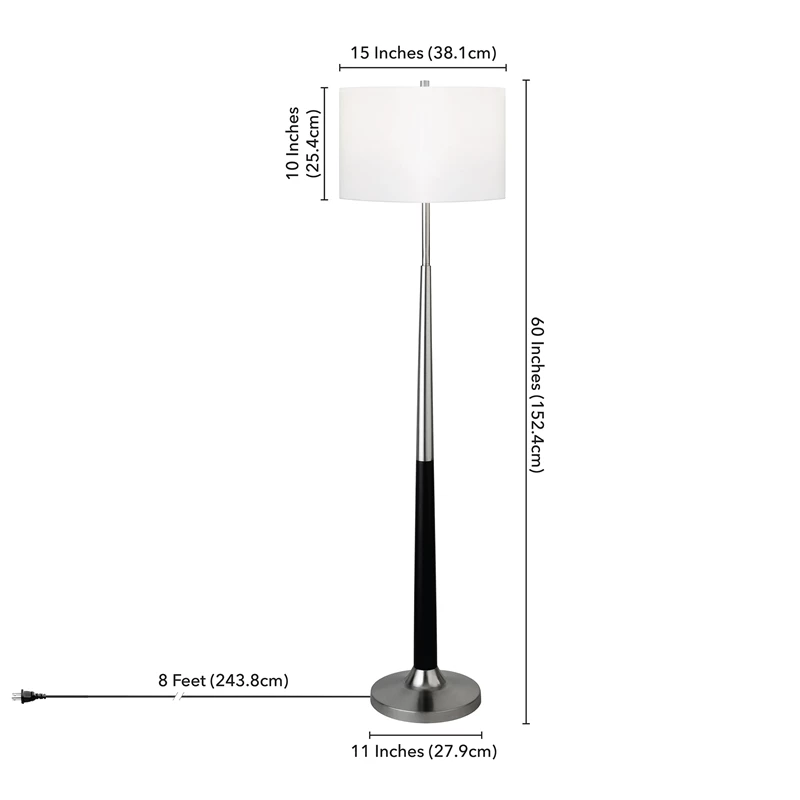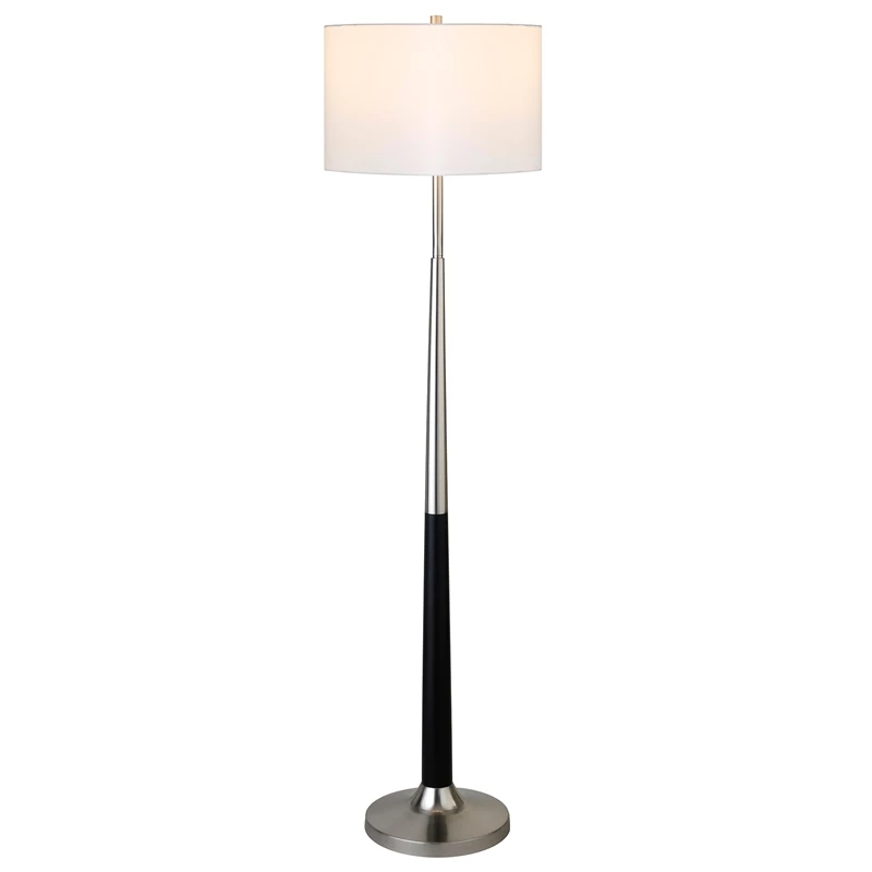 Bring a touch of mid-century modern style to any room with this two-toned floor lamp. On-trend neutral colors are perfectly paired with lustrous metallic accents to elevate your design scheme. A crisp white drum shade tops the gently tapered base, illuminating your space with a polished contemporary look.