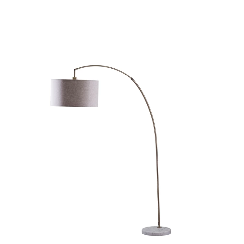 Searching for an eye-catching lamp with a streamlined design to illuminate your home? Look no further than this ultra-modern floor lamp! Standing just over seven feet tall, this sophisticated lamp emits a pleasant light while tying the room together with its artistic presence. The sleek metal body and beige drum shade will perfectly complement a wide range of furniture and décor. The marble base and vertical configuration contribute not only to its elegant appearance but also to the safety and stability of the lamp around children or pets.