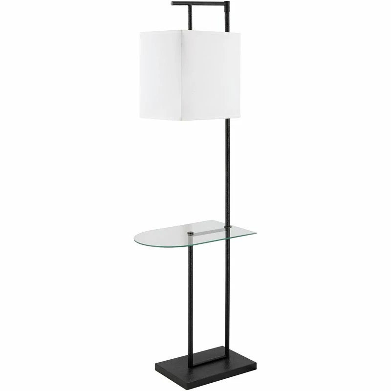 Outlet 😉 Surya Tamron 1-Light Modern Linen And Glass Floor Lamp In Black/Clear 😍